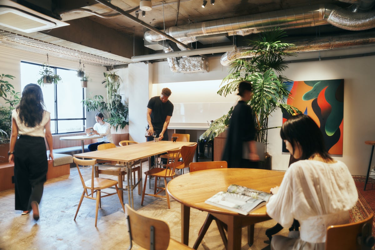 2階には池尻大橋エリアに拠点を置くデザイン会社「&Supply」が設計した共用ラウンジがあり、利用者同士のコミュニケーションが生まれる流動的な空間となっています。個人事業主やフリーランス向けには、専有ブース6区画、固定デスク21席を用意しています。