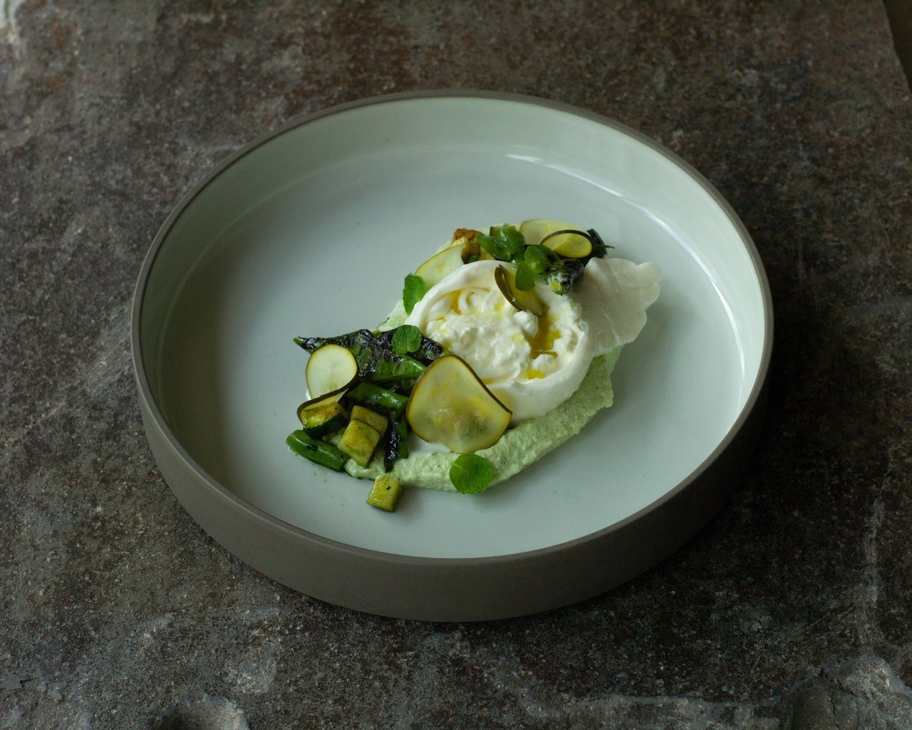 日本橋小舟町のカフェベーカリーParkletを手掛け、世界のフードシーンと繋がるチーム「Terrain」の新店舗。朝はOverview Coffeeのコーヒーとペイストリーを提供し、昼から夜はロンドンのワインバーNoble Rot出身のソムリエCailean McGregorと、星付きレストランでの豊富な経験を持つカリフォルニア出身のシェフColeman Griffinがタッグを組み、ヨーロッパやアメリカの料理を日本の食材とテイストで表現したメニューを提供します。ワインセラーにはクラシックなものからナチュラルまで常時2000本以上の多種多様なワインを取り揃え、先鋭的かつ国際的なワインカルチャーを楽しめます。