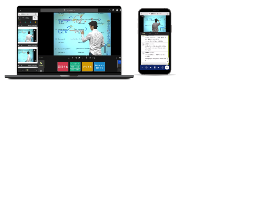 映像授業へのタグ付け・シーン再生機能により、いつでも・どこでも予習・復習が可能に