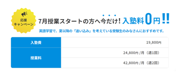 大手映像予備校や個別指導塾2つの塾に通った場合と比較すると、ココでは同条件の元でその半額程度の料金設定になっており、継続しやすい価格です。