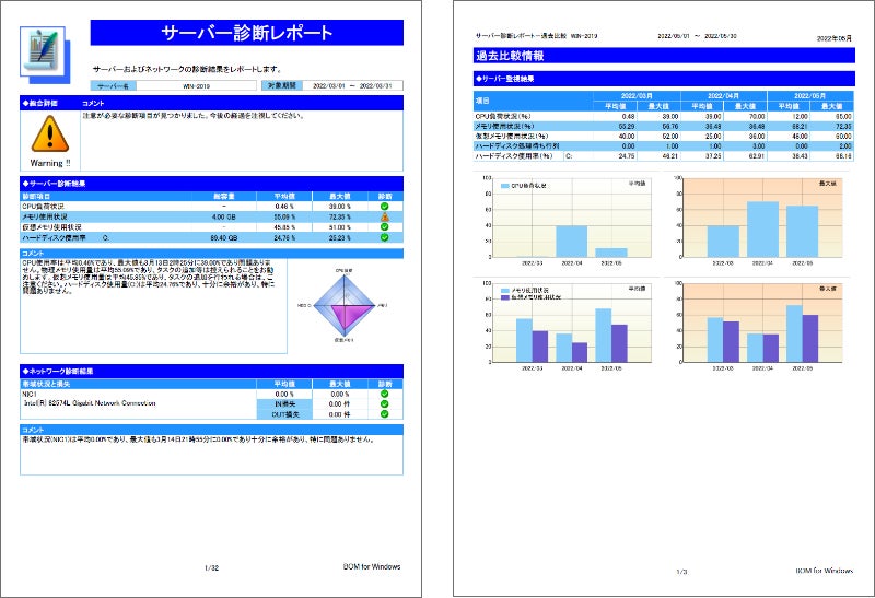 BOM for Windows は従来から、サーバーの使用状況を可視化する診断レポートを出力できる機能を有していました。本機能によって保守サービス事業者は、ユーザー企業に HDD の増設提案などシステム運用サービスに必要な“情報”を提供してきました。