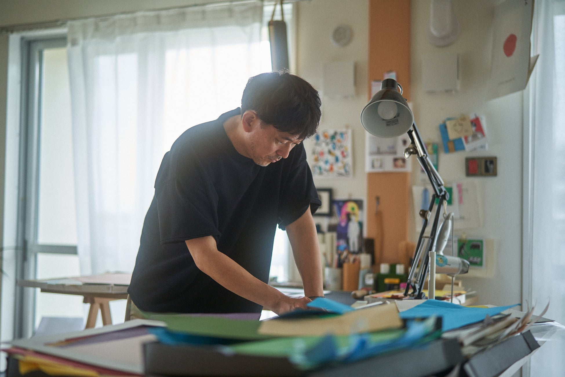 Life on two wheels vol.1 では、日々の暮らしの中にあるシーンをリリカルなタッチで描くイラストレーター坂内拓を招き、12枚の切り絵を制作しました。 Aspectから坂内氏へ渡した、「風を、感じるようになる」「心地よく、ひとりぼっちになれる」「寄り道が楽しくなる」といった自転車の魅力を切り取った12の短い文章から、それぞれを表現する作品を発表しました。同時に、Aspectでは坂内拓のアトリエにて切り絵の制作風景を取材し、インタビューと共に掲載しました。