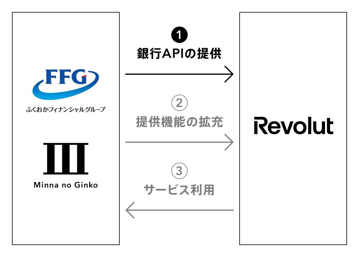 レボリュートが世界で展開する金融機能の一部(外国送金・運用系サービス・共同カード発行)をみんなの銀行を含めたFFGグループ銀行で、活用することを検討していきます。