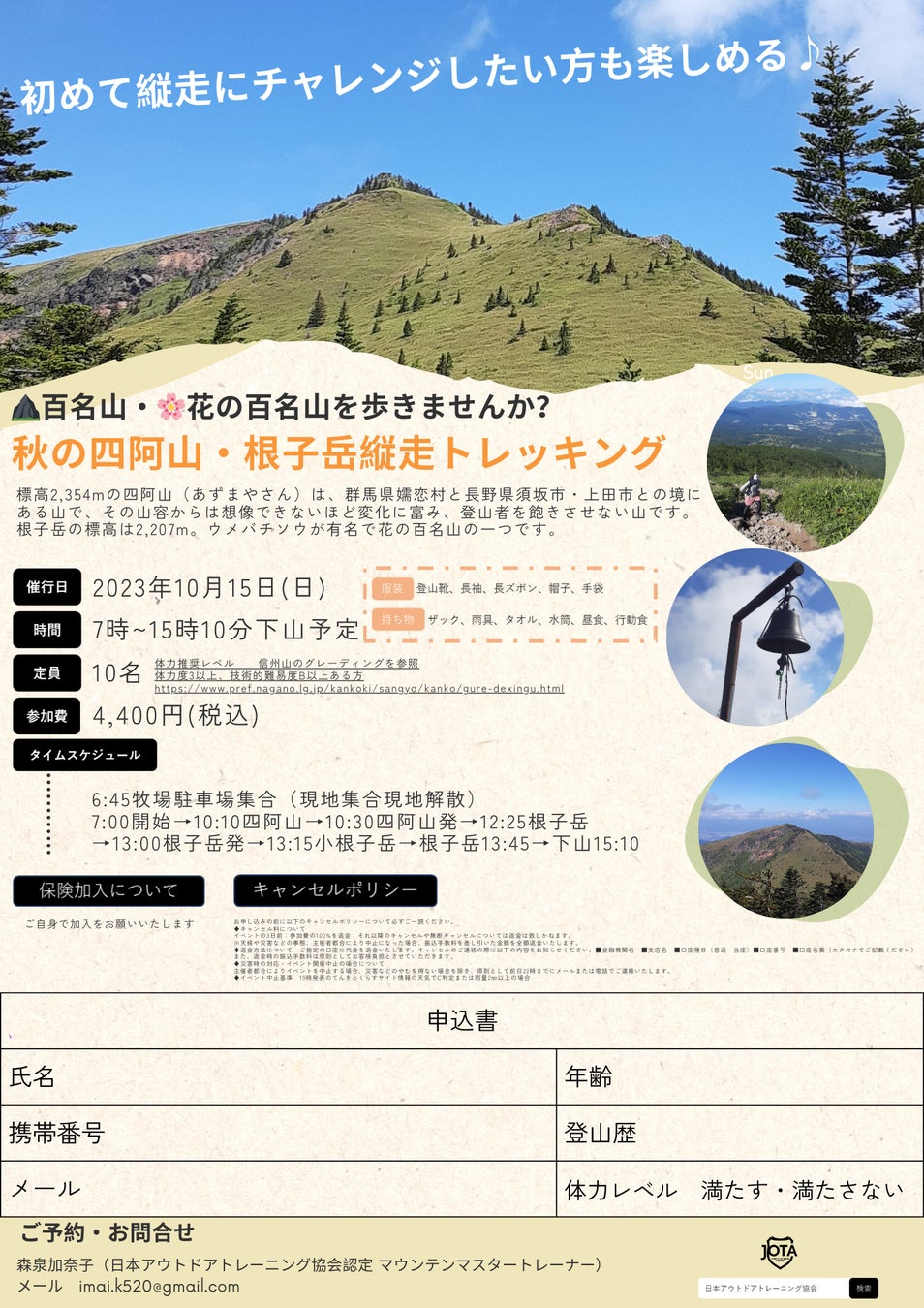 日本百名山の四阿山で登山トレーナーが日帰り縦走イベントを開催