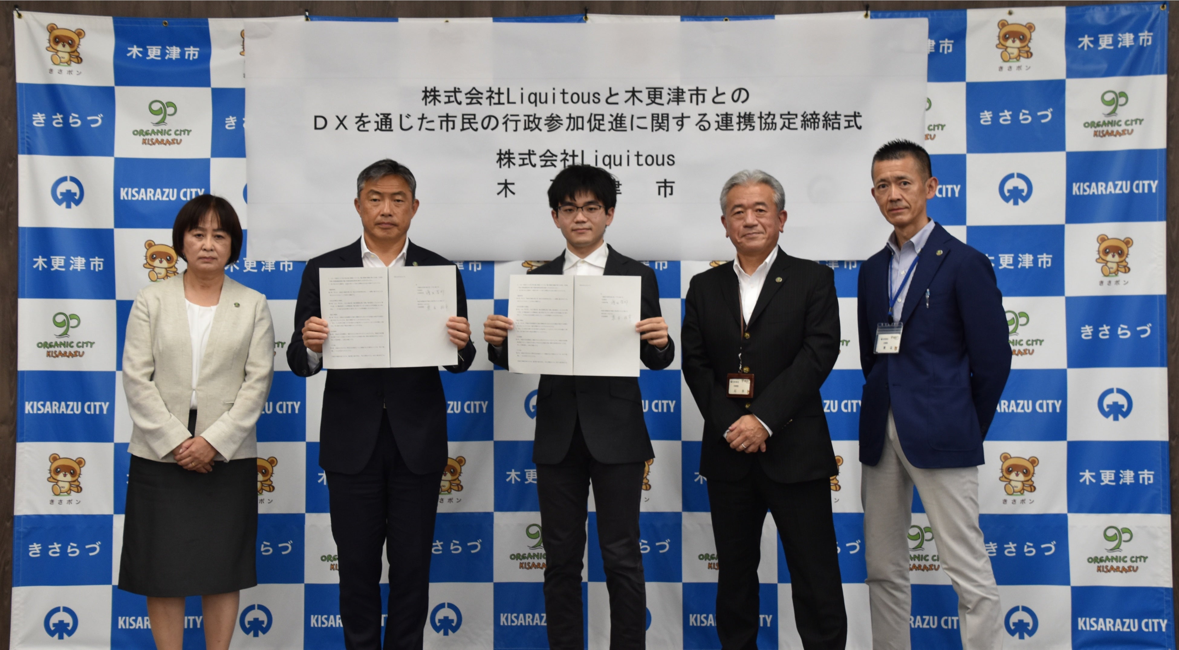 株式会社Liquitous(本社:神奈川県横浜市、代表取締役CEO:栗本 拓幸)は、千葉県木更津市(市長:渡辺 芳邦)と「DXを通じた市民の行政参加促進に関する連携協定」を締結しました。