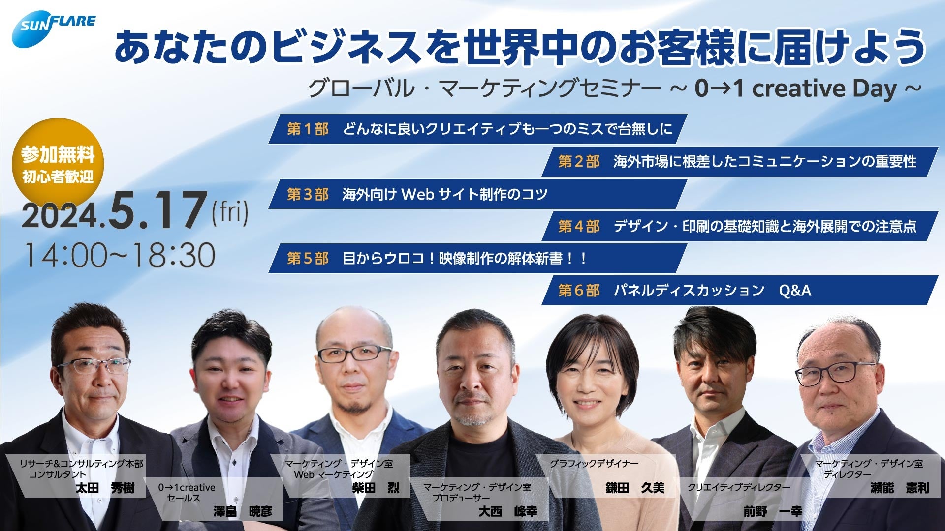≪早期申込特典あり:5/17(金)開催≫海外進出への第一歩!『グローバル・マーケティングセミナー2024 ~0→1 creative Day~』を東京で開催