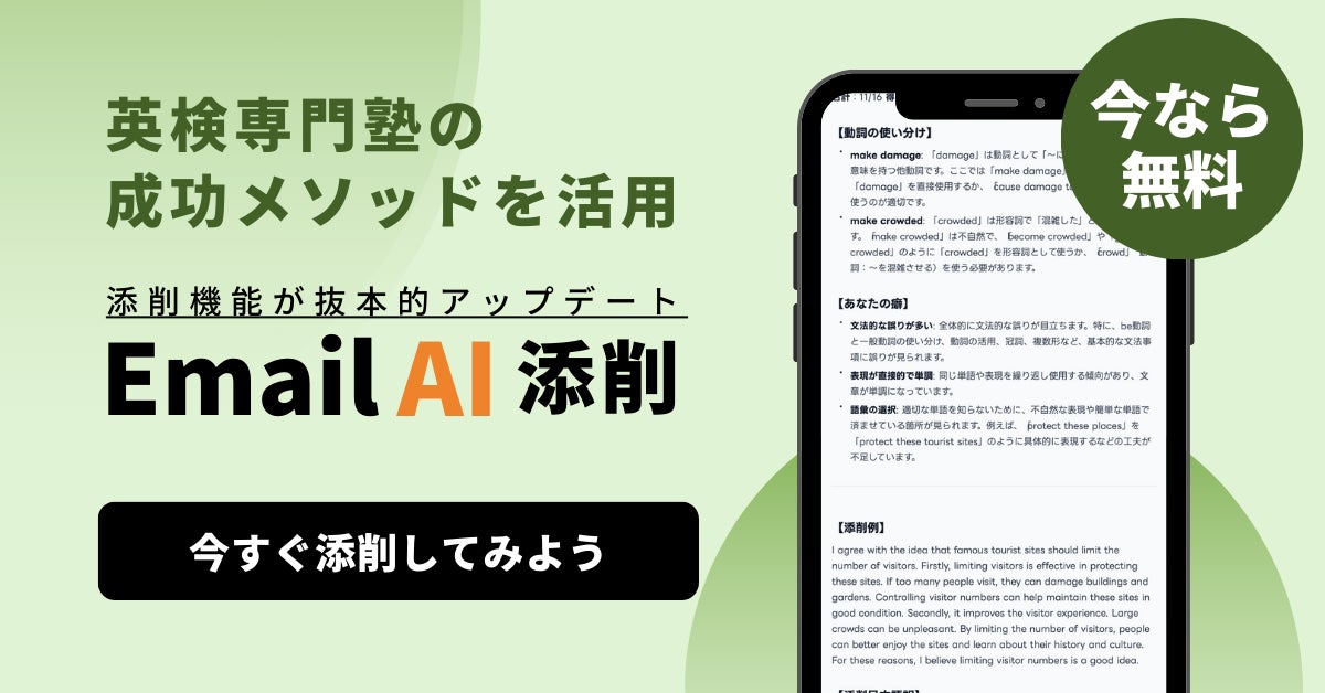 ※このコンテンツは、公益財団法人 日本英語検定協会の承認や推奨、その他の検討を受けたものではありません。