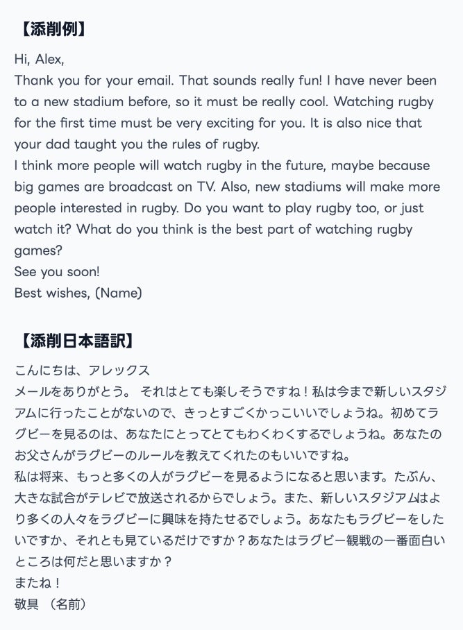 Eメール以外にも、要約問題や意見論述問題など、英検®の各ライティング形式をカバーしてまいります。今回のアップデートで培った仕組みを全方位に広げ、どの形式の英文を書いても充実した添削を得られる環境を目指します。