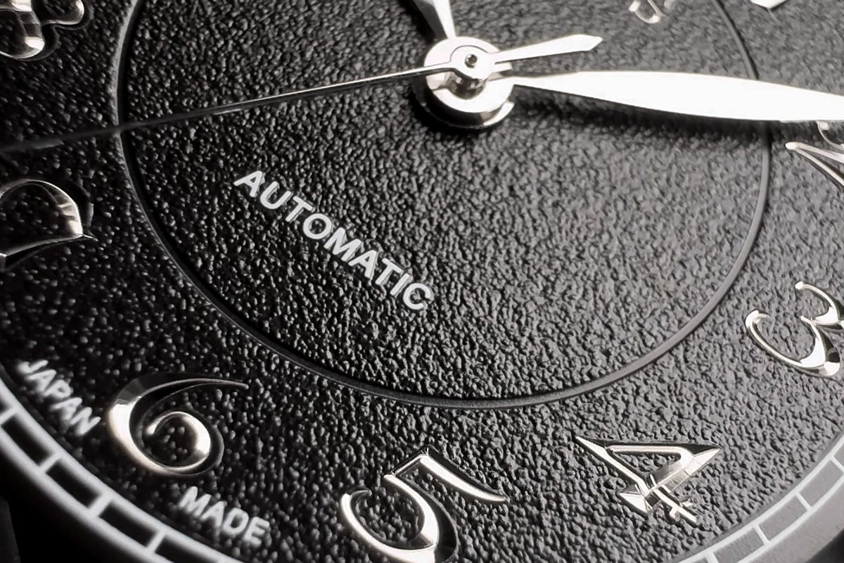 ◆ 特徴:時代を超える文字盤美、彫金インデックスが時を刻む日本製自動巻き腕時計
