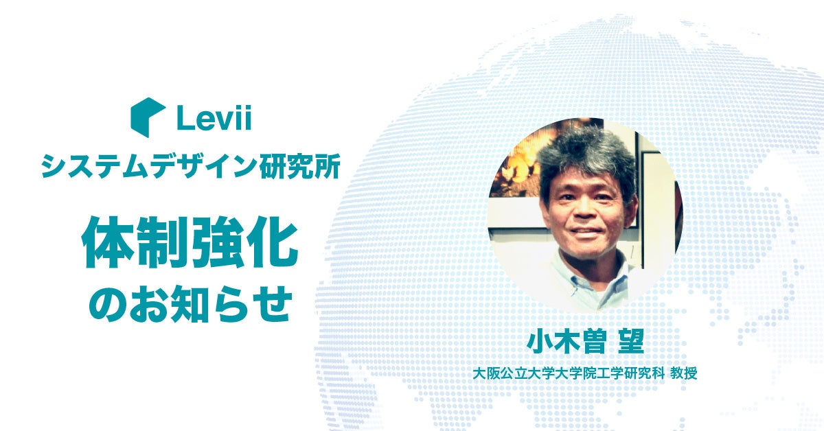 レヴィはこれらのサービスのさらなる質向上と、基盤となるシステム工学に関する知見の増強を目的として、最適設計・信頼性工学分野の第一人者である小木曽望先生(大阪公立大学教授)をシステムデザイン研究所の顧問としてお迎えしました。