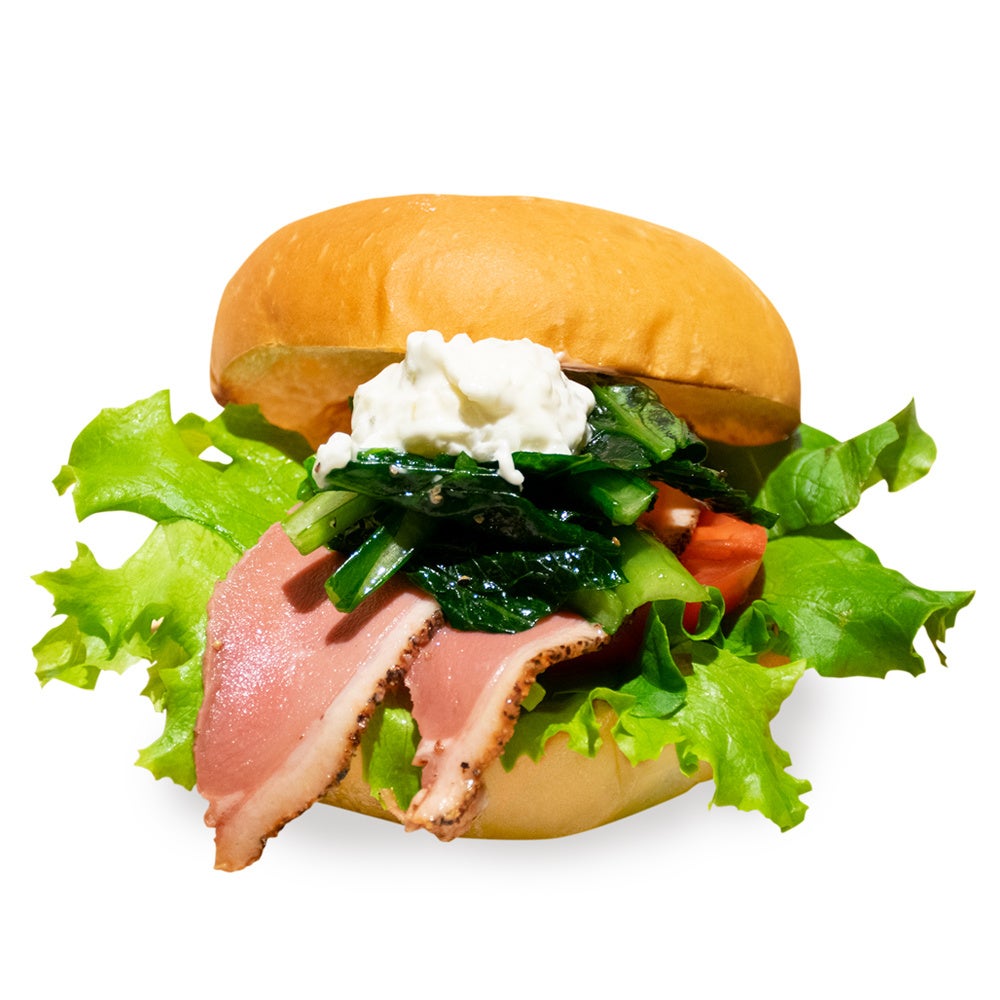 小松菜のマリネ、グリーンカール、トマトマリネに、スモーク鴨をトッピングした、the 3rd Burgerオリジナルのサラダです。単品でも、ハンバーガーとのセットでもお楽しみいただけます。