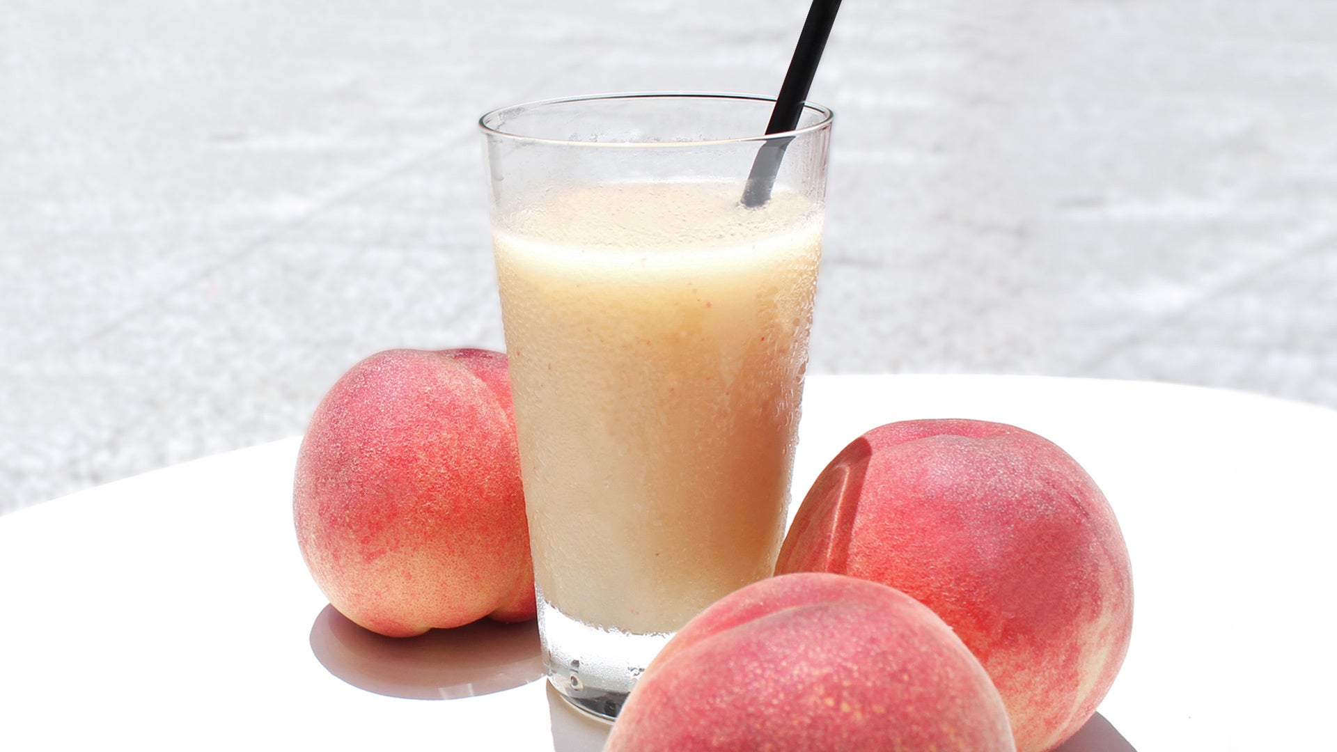 この時期が旬のフレッシュな白桃を1/2個使用し、リンゴとバナナを加え、果物の甘みだけですっきりとした爽やかな甘さに仕上げました。白桃は、食物繊維が豊富でカリウムや果糖も多く含まれているため、厳しい暑さを迎えるこれからの季節にぴったりのスムージーです。