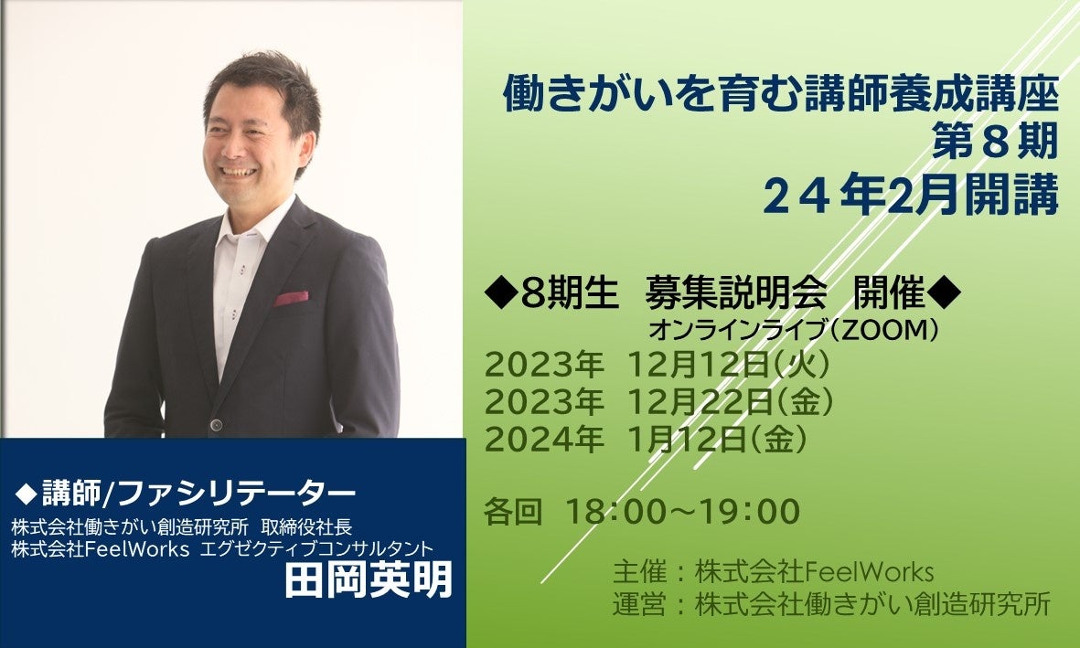 【働きがいを育む講師養成講座】8期生募集説明会開催 ~2024年2月開講~