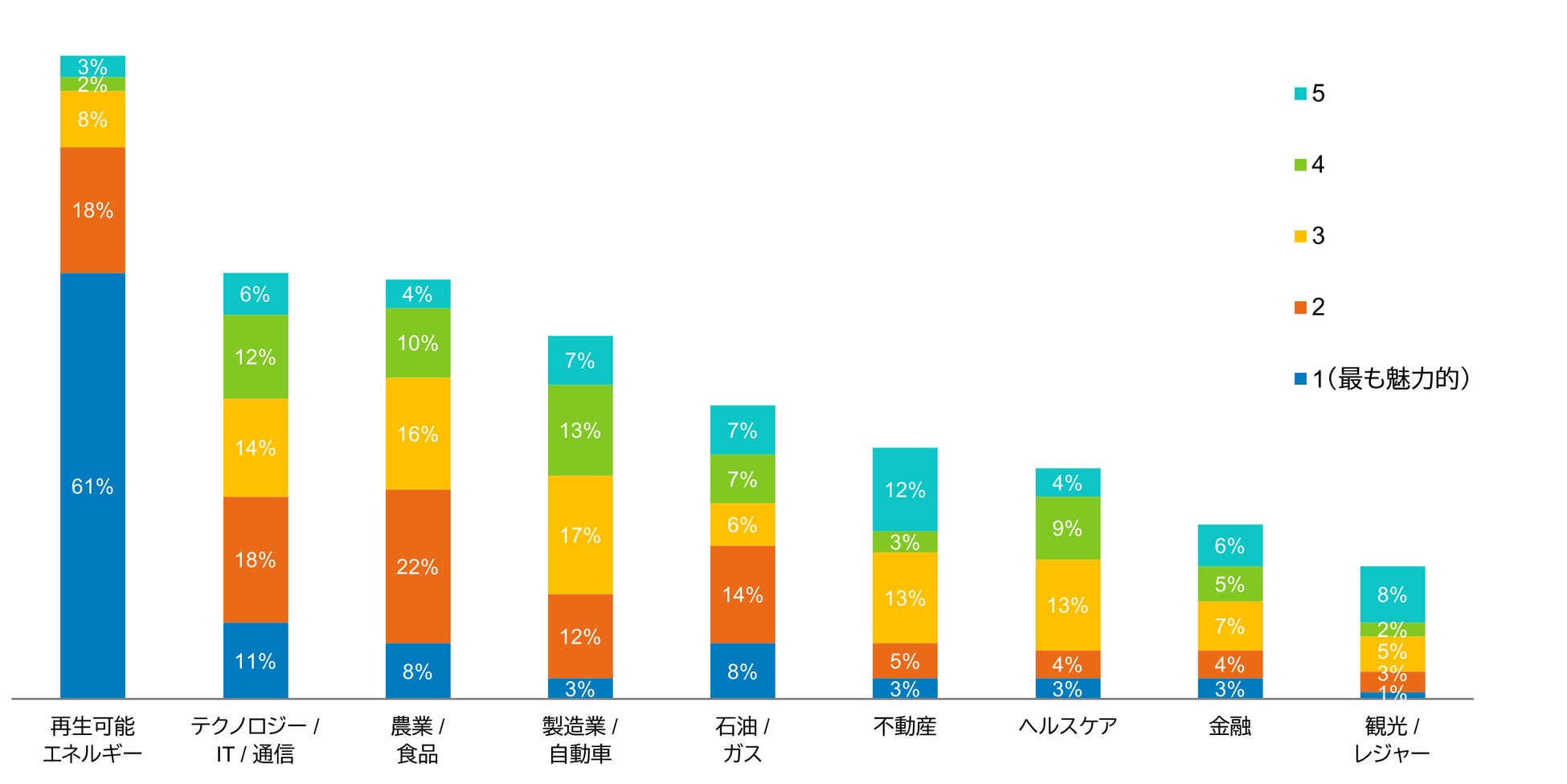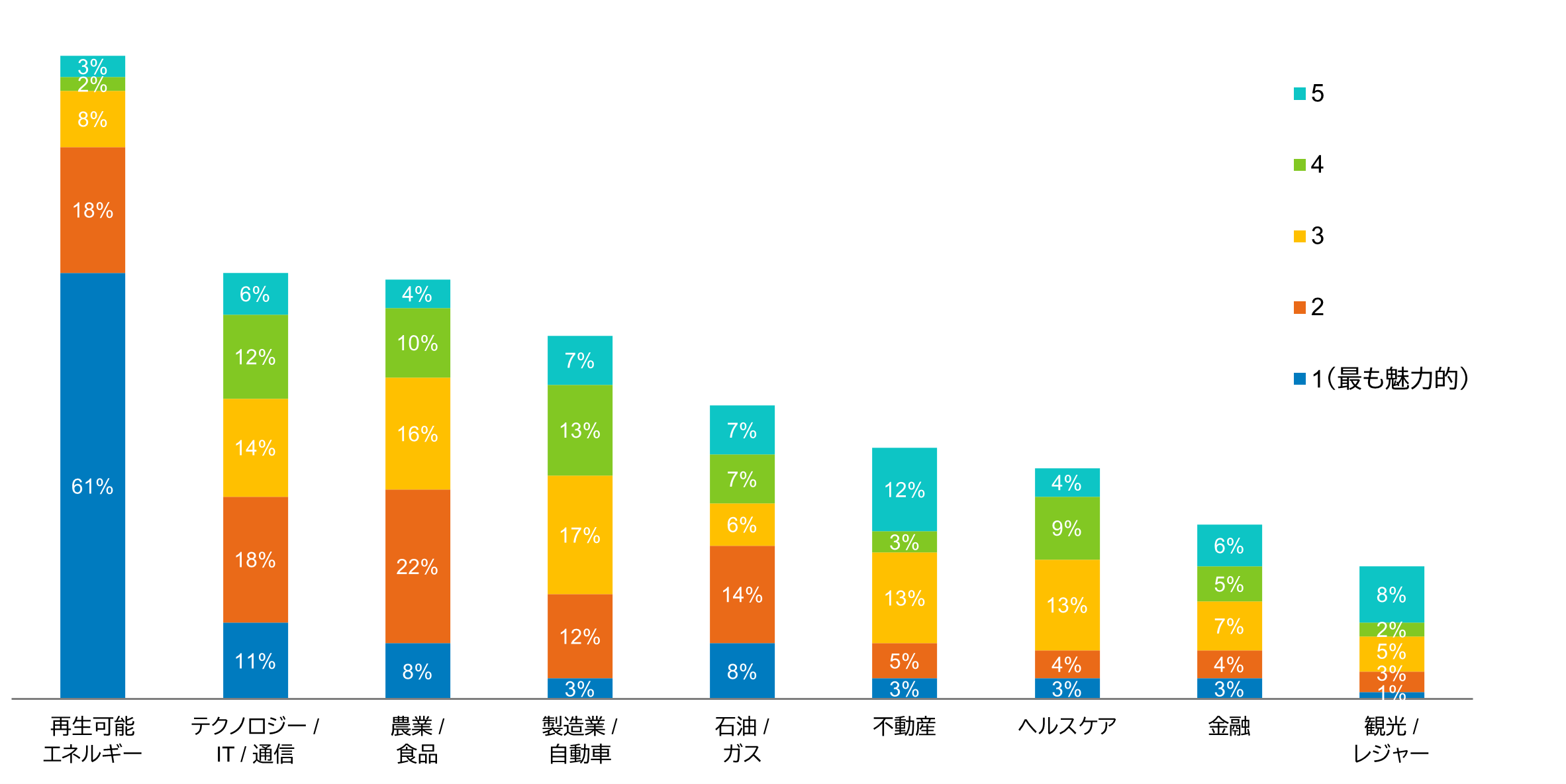 質問:「公正な移行」を達成する上で、投資の観点から最も魅力的なセクターはどれですか?上から順に5つ選んでください。 (回答数:127社)