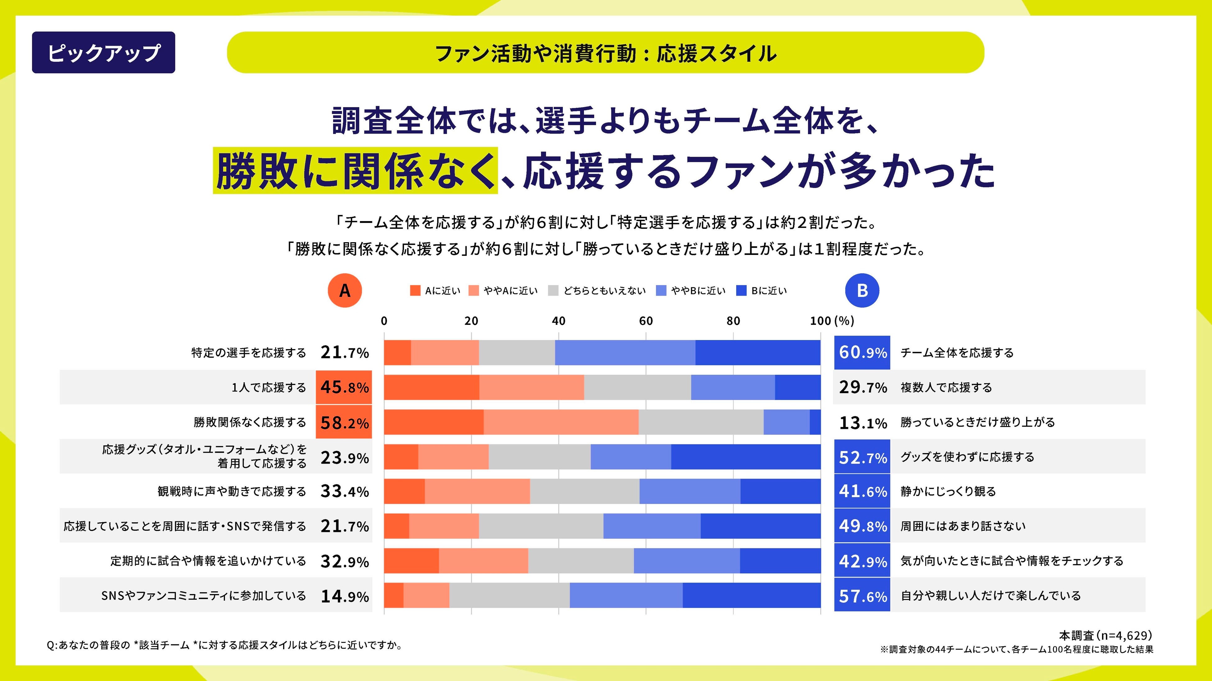 調査全体では、選手よりもチーム全体を、勝敗に関係なく、応援するファンが多かった。