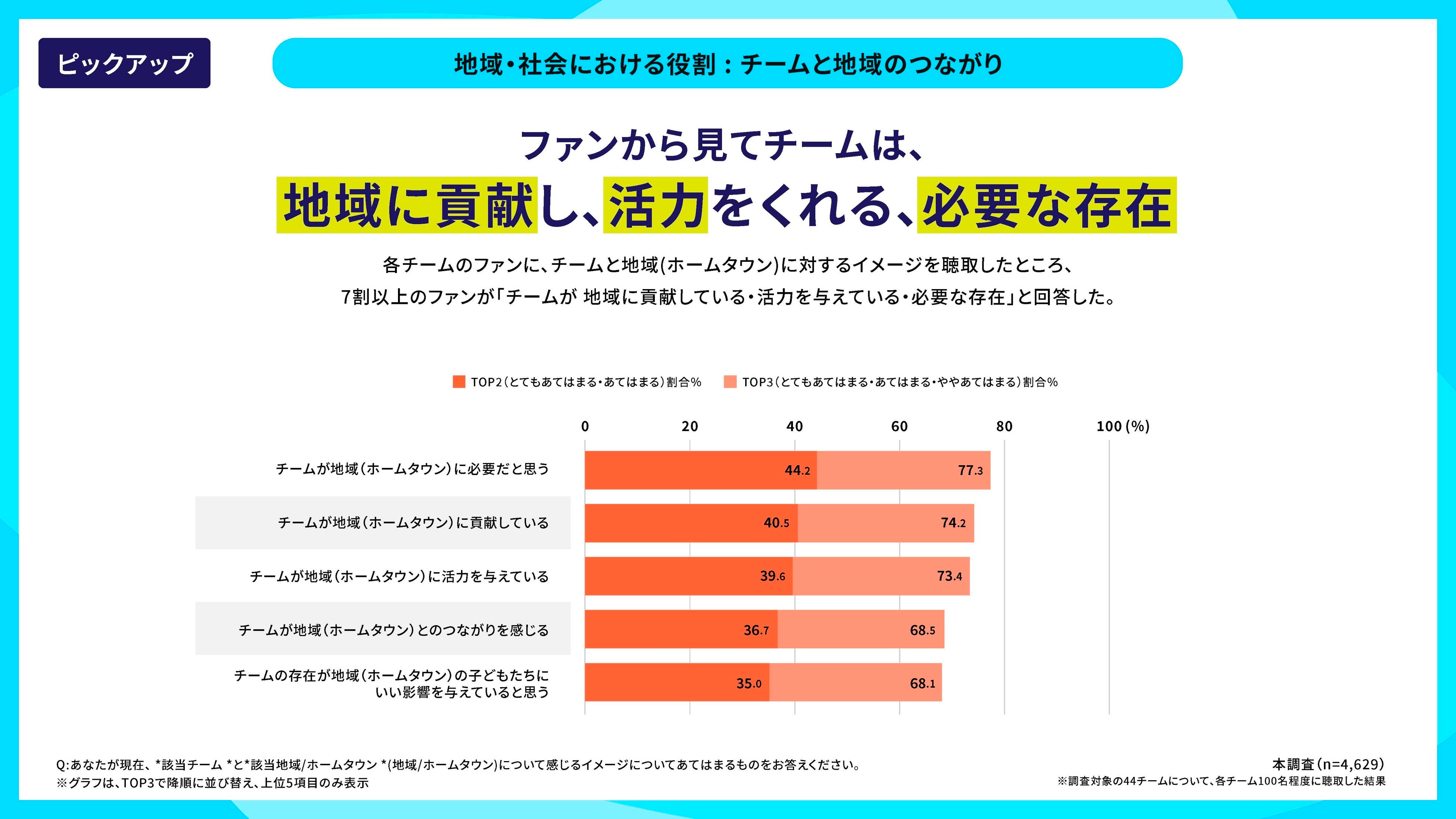 ファンから見てチームは、地域に貢献し、活力をくれる、必要な存在。