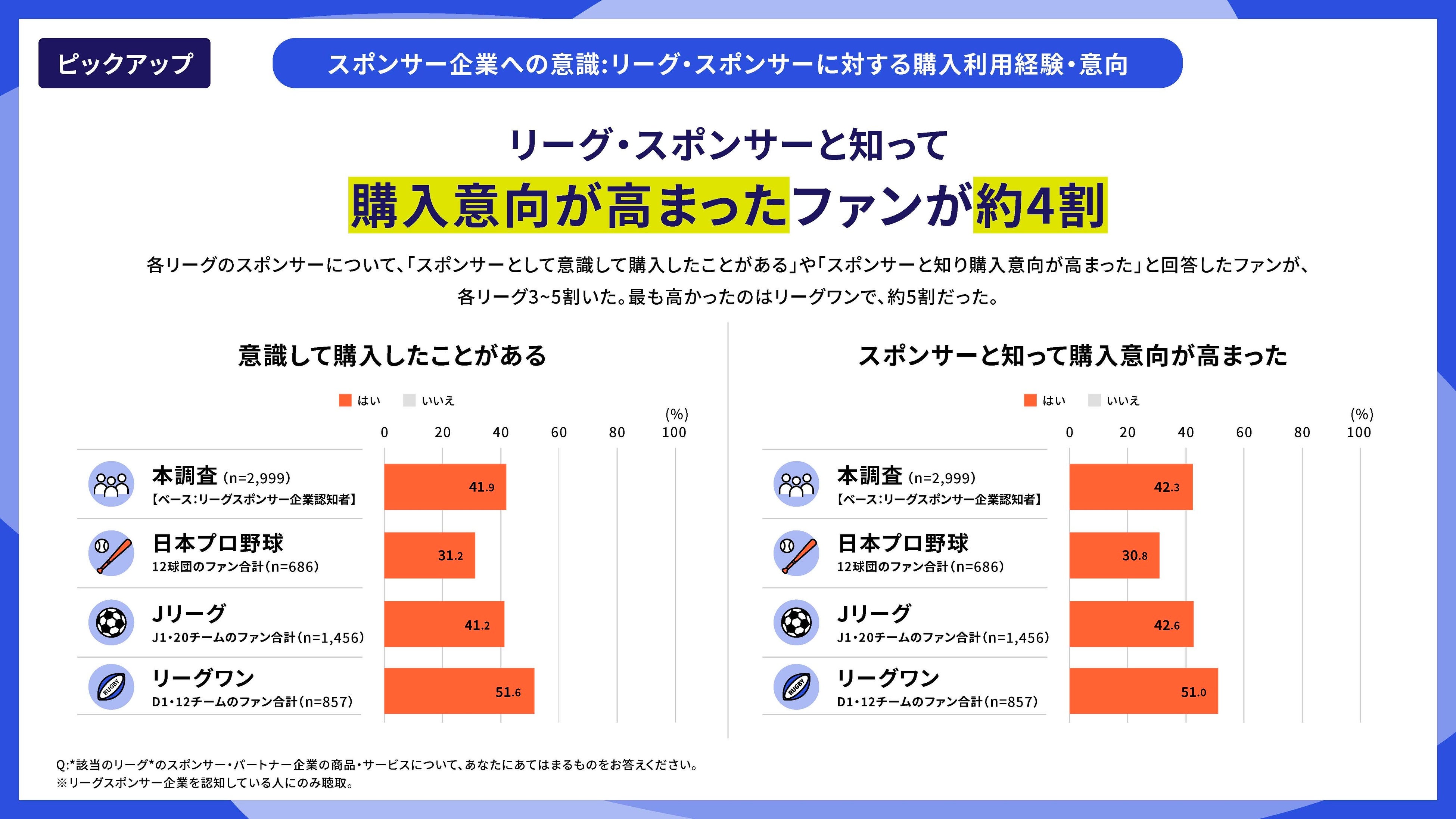 リーグ・スポンサーと知って購入意向が高まったファンが約4割。