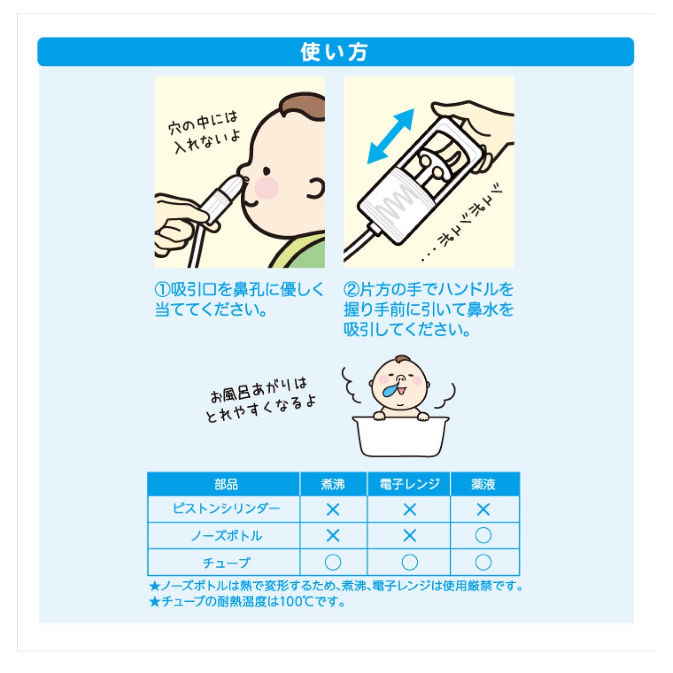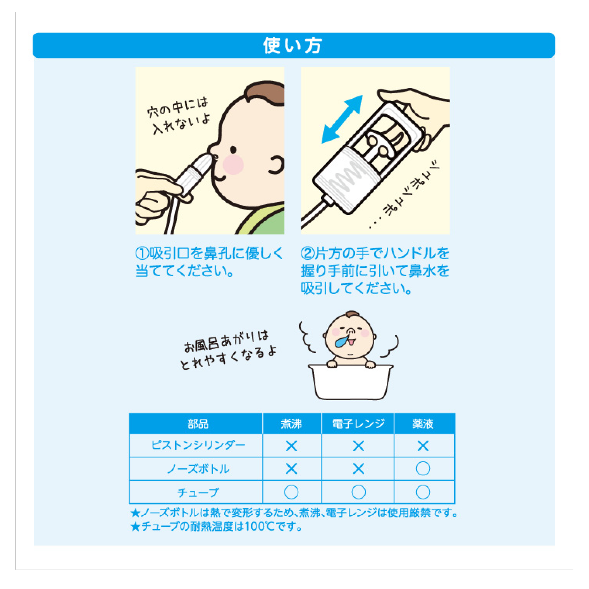 - 粘り気のある鼻水などをやわらかくできるので、いつもの鼻水吸引がより簡単に!