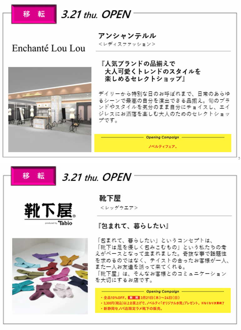かじめご了承ください。今後のリニューアル情報につきましては、新静岡セノバ公式ホームページ等でお知らせ