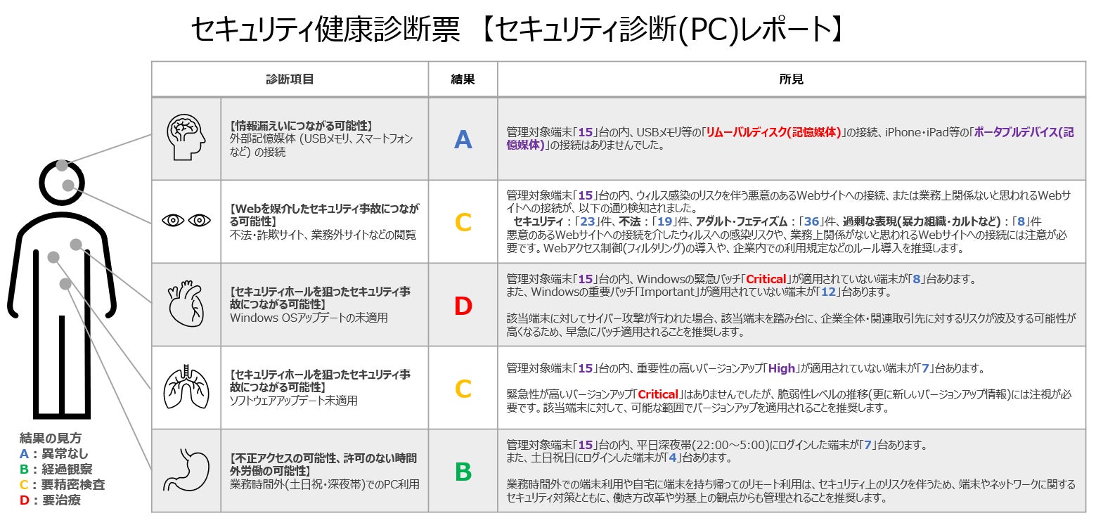 < セキュリティ診断(PC端末)レポートのイメージ >