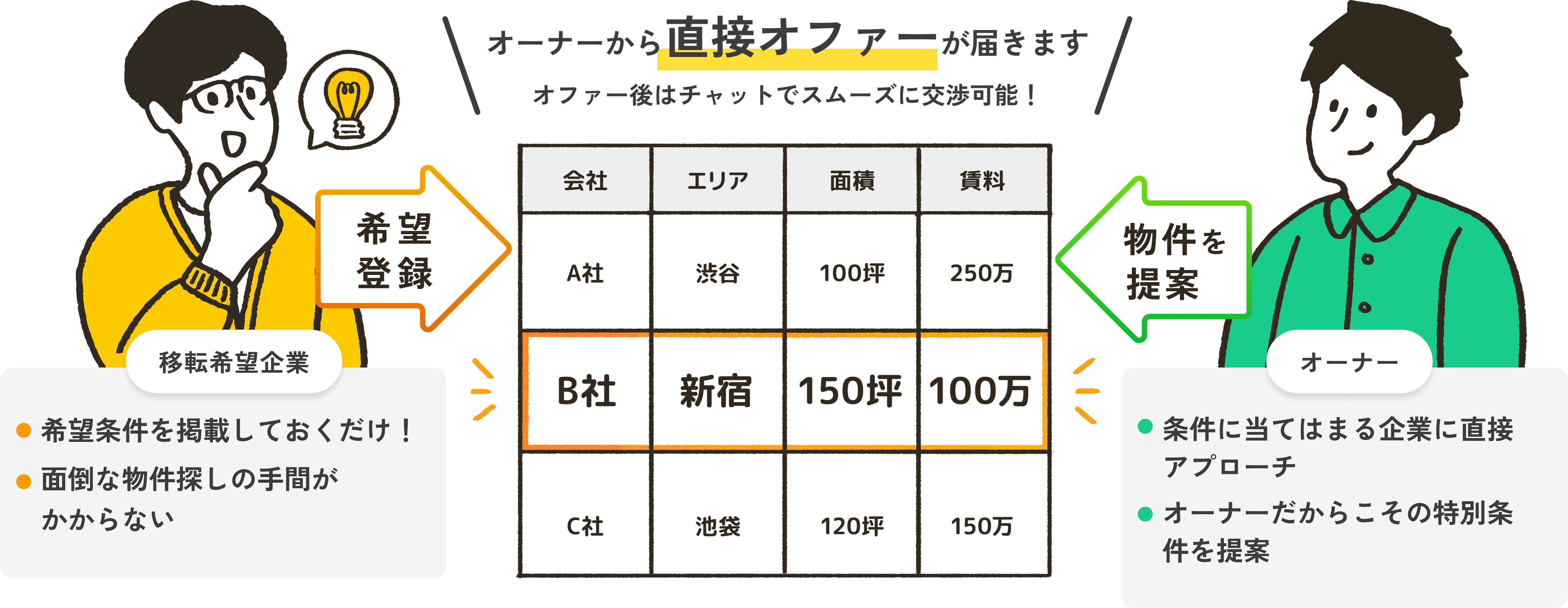 ⚫︎希望条件を掲載して待っているだけで、オーナーからの直接オファーを受けられる