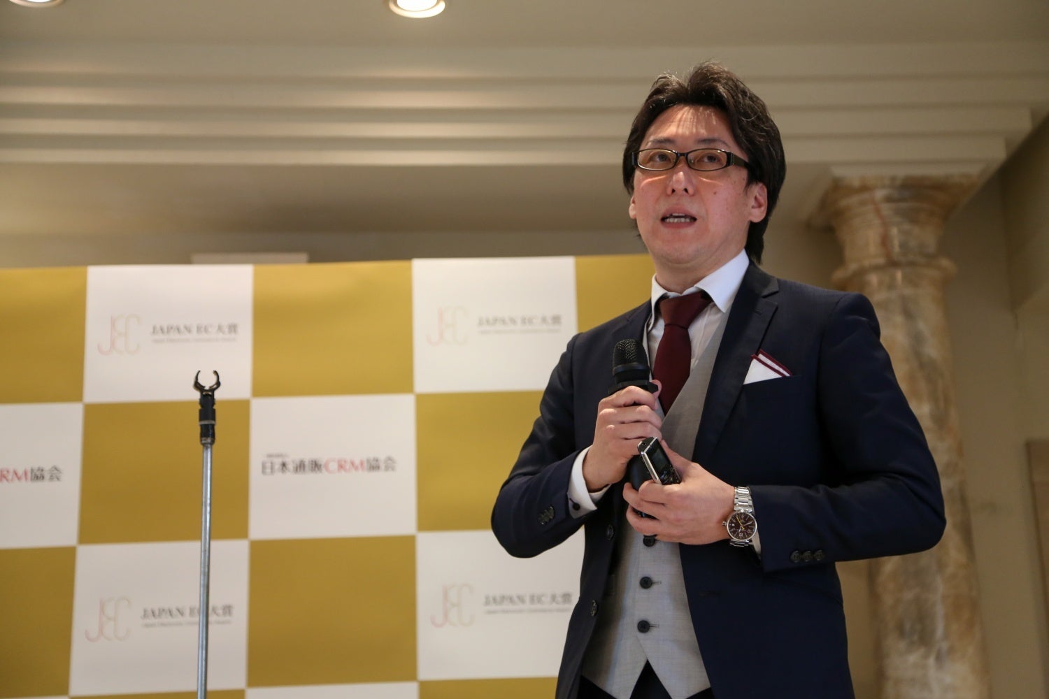 代表理事の向 徹 氏より、JAPAN EC 大賞に懸ける想いから始まりました。CRM協会の活動やJAPAN EC 大賞を通じて、本質的なCRMを実践・体現されている企業をお客様に知って頂き、触れて頂く事で、本質的なCRMの浸透やECの市場規模拡大に貢献し、CRMを広めていく事の重要性を話されました。