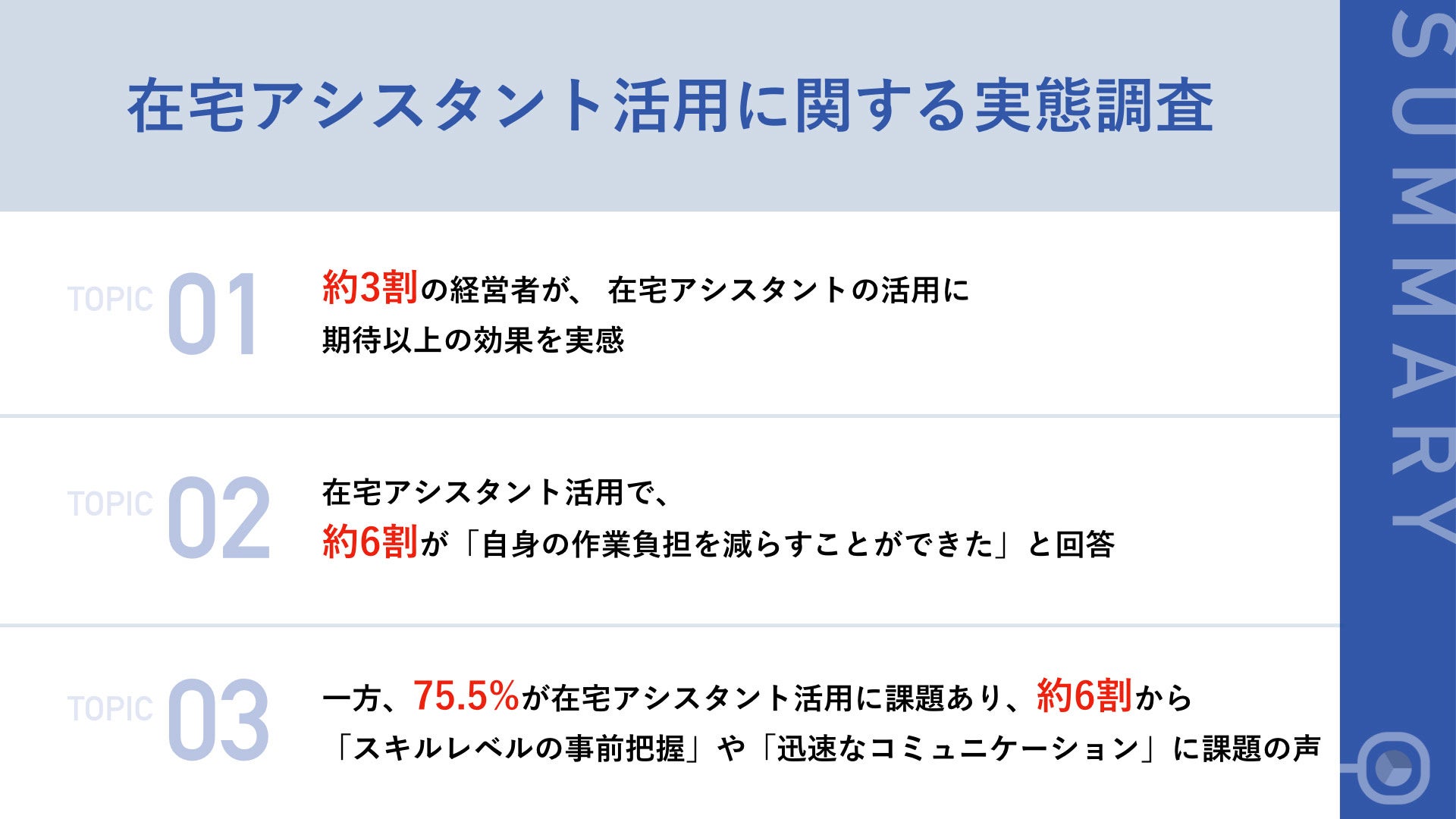 - 約3割の経営者が、 在宅アシスタントの活用に期待以上の効果を実感
