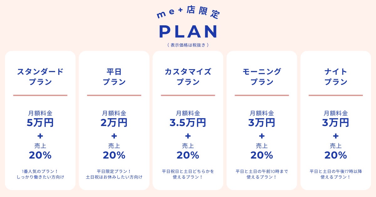 「産休明けに少しずつ復帰したい」「子育て中でも働きやすい」を実現するために、me+店限定のプランを導入しています。
