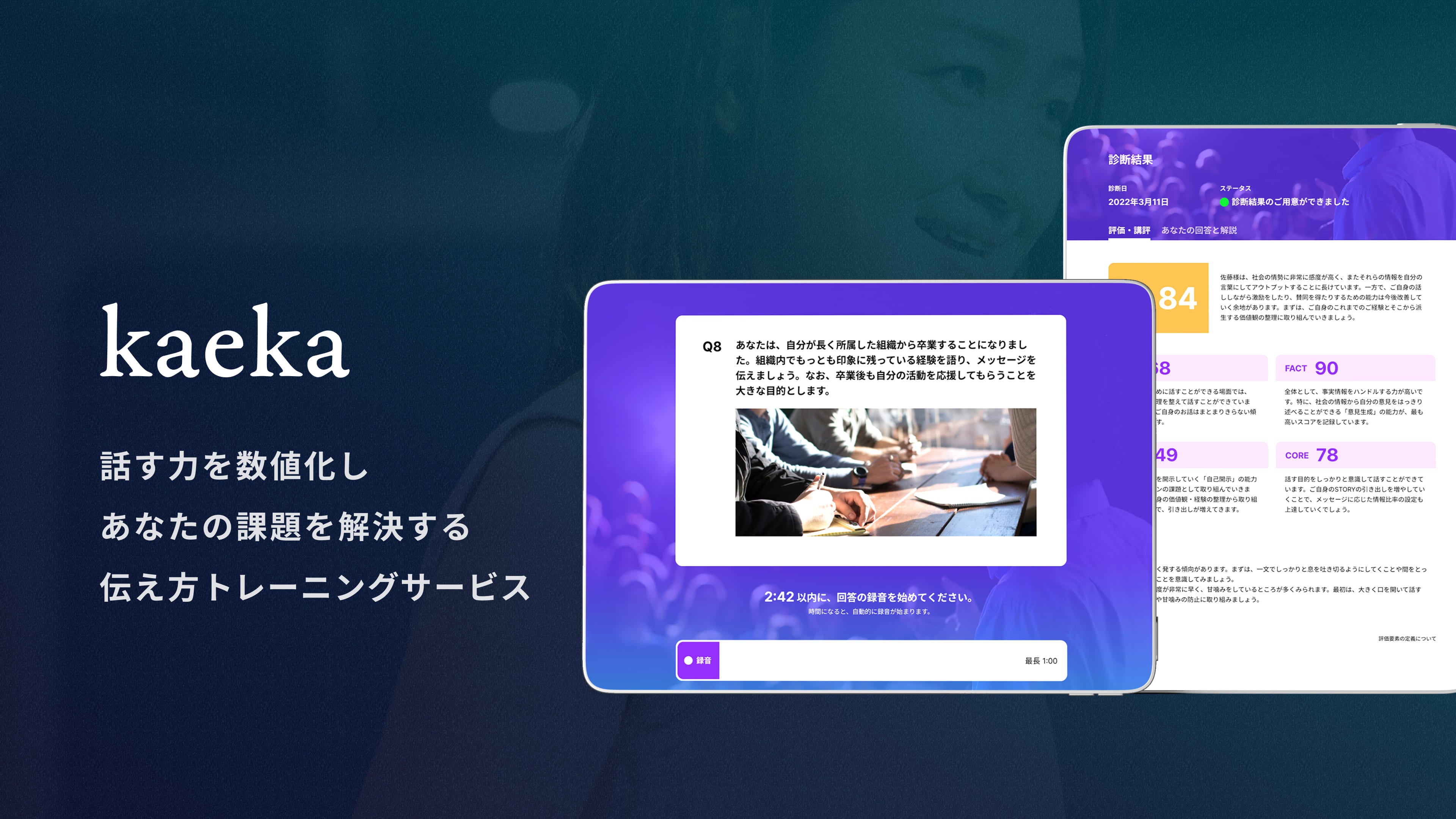 - 話す力を数値化しあなたの課題を解決する伝え方トレーニングサービス「kaeka」