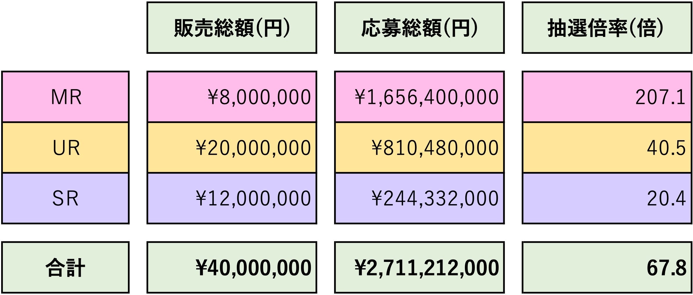 ~ 応募金額ベースの抽選倍率は全体で67.8倍、MRで207.1倍を記録 ~