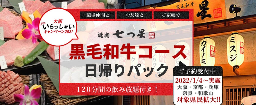 1人3,000円以上お得に食べれる方法を伝授します!北浜・淀屋橋・福島で人気の「焼肉七つ星」黒毛和牛コースが新登場!!【飲み放題が付いた日帰りパック】大阪いらっしゃいキャンペーン対象商品です。