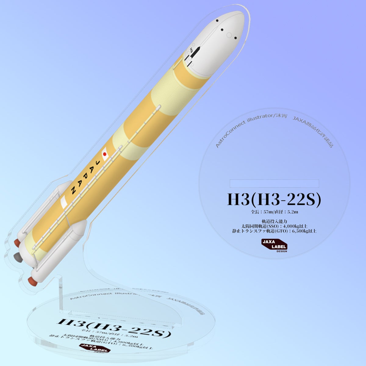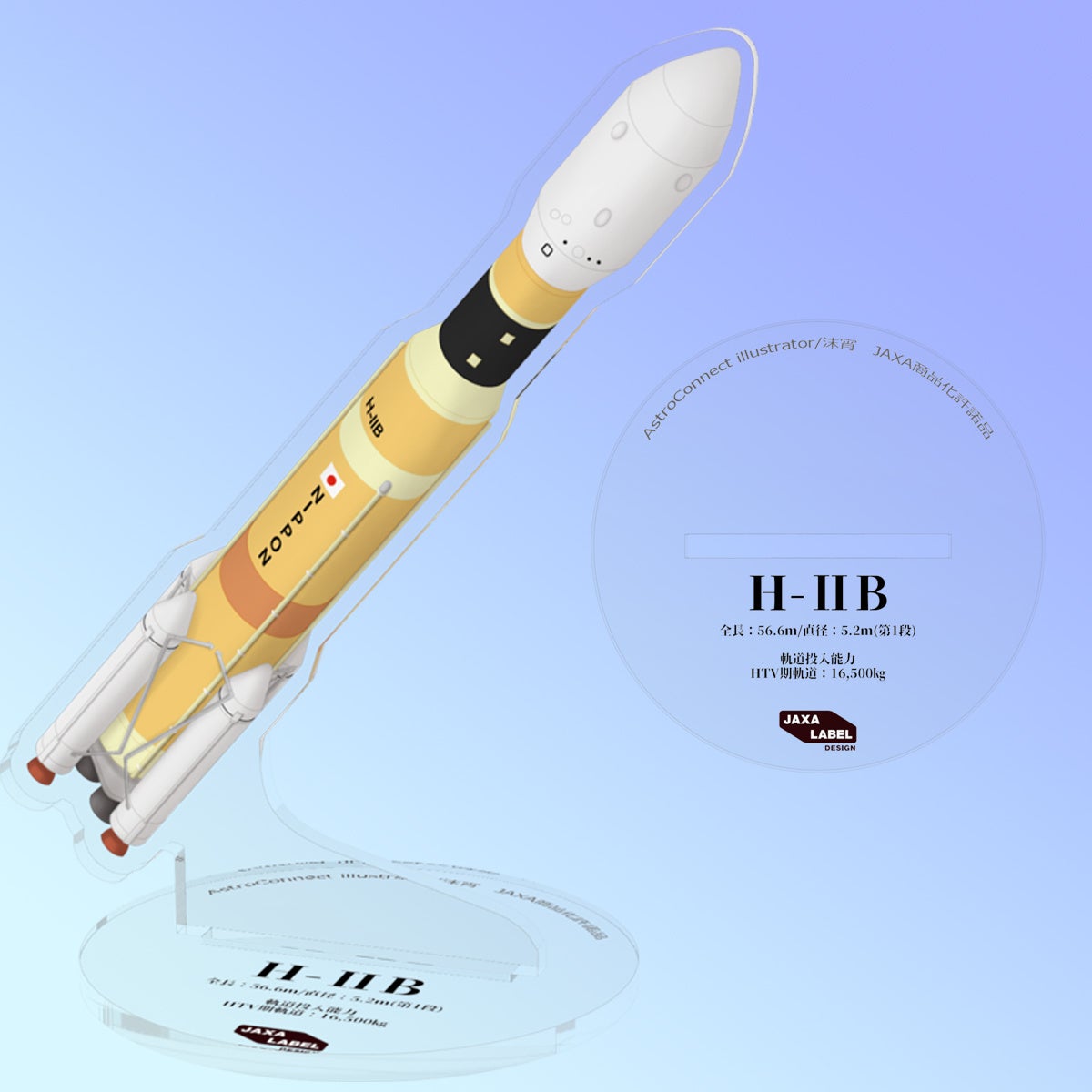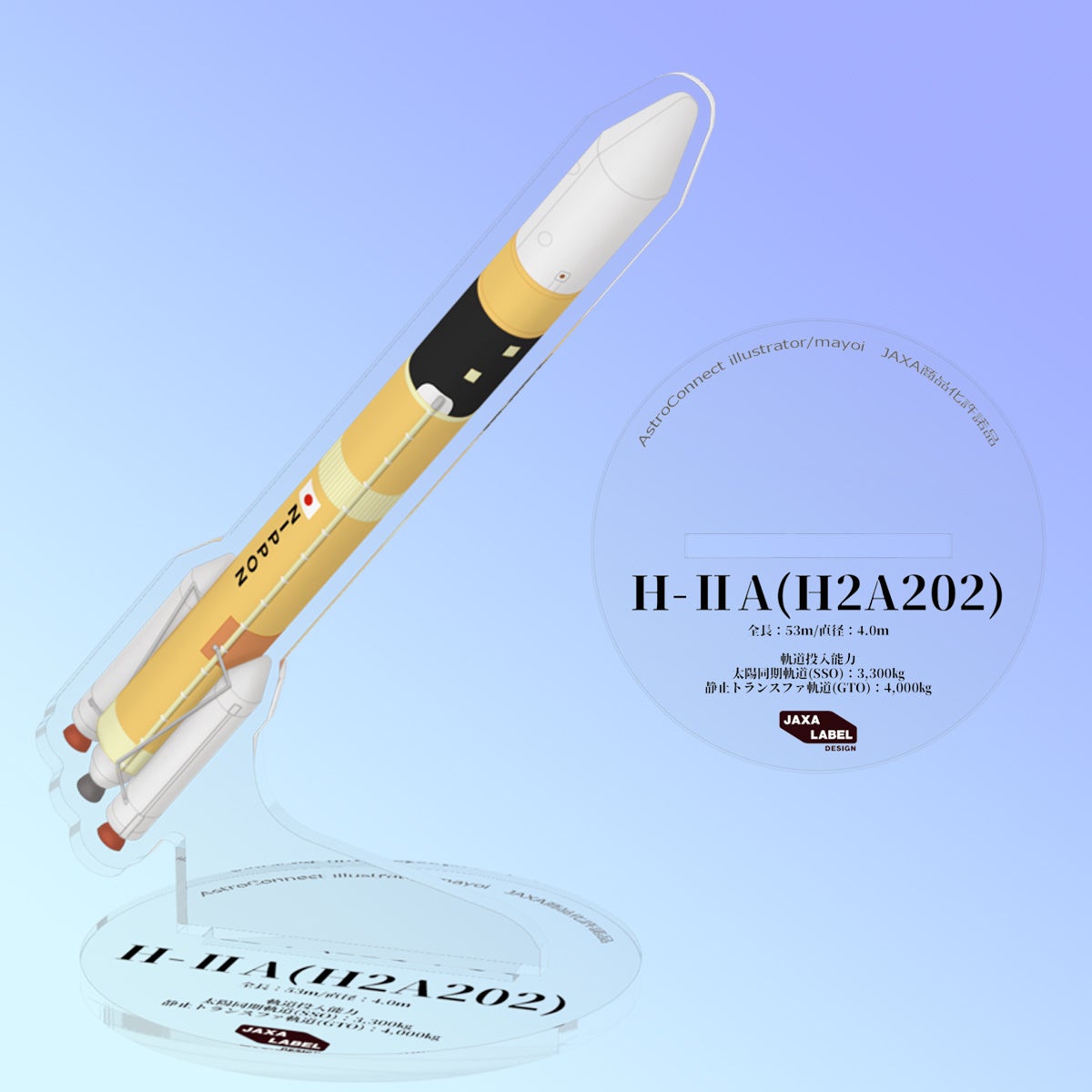 台座にはロケット名、全長、直径、軌道投入能力および「JAXA LABEL DESIGN」ブランドロゴが入っています。