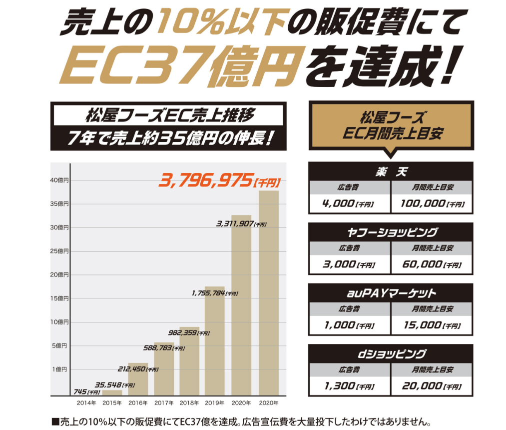 また、松屋のEC売上を年間700万円から37億円まで伸長させたスタッフが運営の実務を担当することが強みの一つである。
