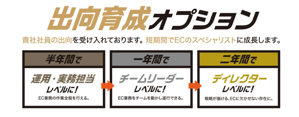 このオプションを利用することで、本プロジェクトに社員を派遣して教育を任せることが可能であり、1年前後で1人前のEC人材へと育成できる。