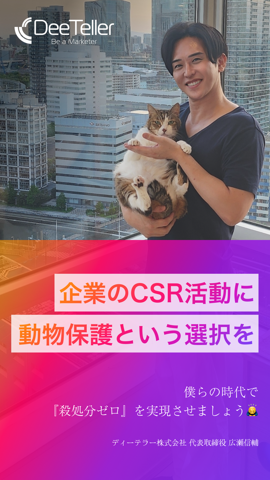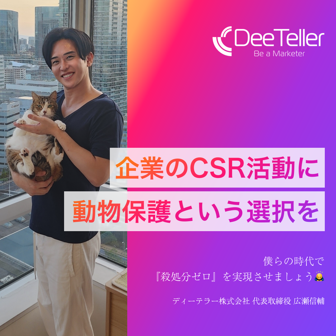 ディーテラー株式会社(本社:東京都港区、代表取締役社長:広瀬信輔)は、CSR活動として、動物保護団体への寄付を開始いたしました。動物の命を救う、またはそれに準ずる活動を行っている団体へ今後寄付を行っていきます。