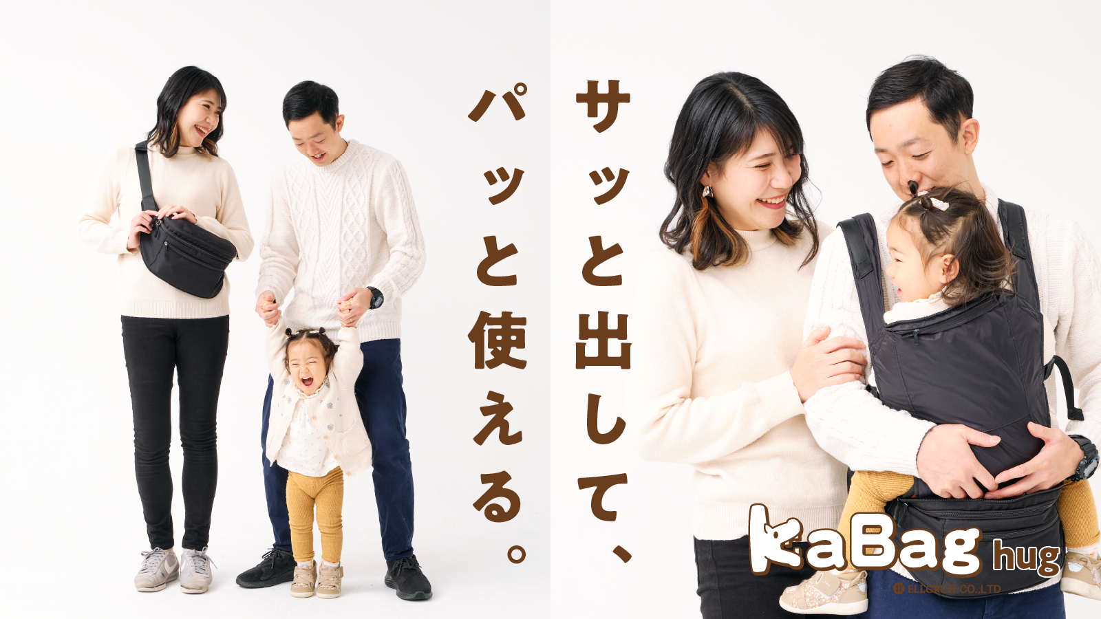 【最新作】1〜2歳のお子さんがいるママ・パパの悩みを解決!急な抱っこもしっかりハグ。サッと出してパッと使える抱っこ紐:KABAG hug(カバッグハグ)