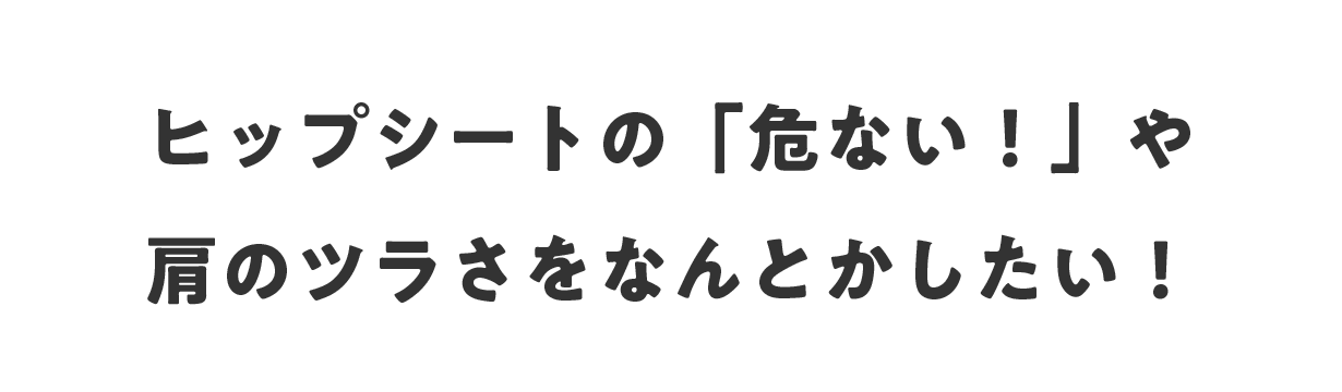 ①急な抱っこに困った。②抱っこ紐は嵩張る。③ヒップシートは肩に負担がかかるし急にそり返った時に危ない。そんな問題を解決しました。