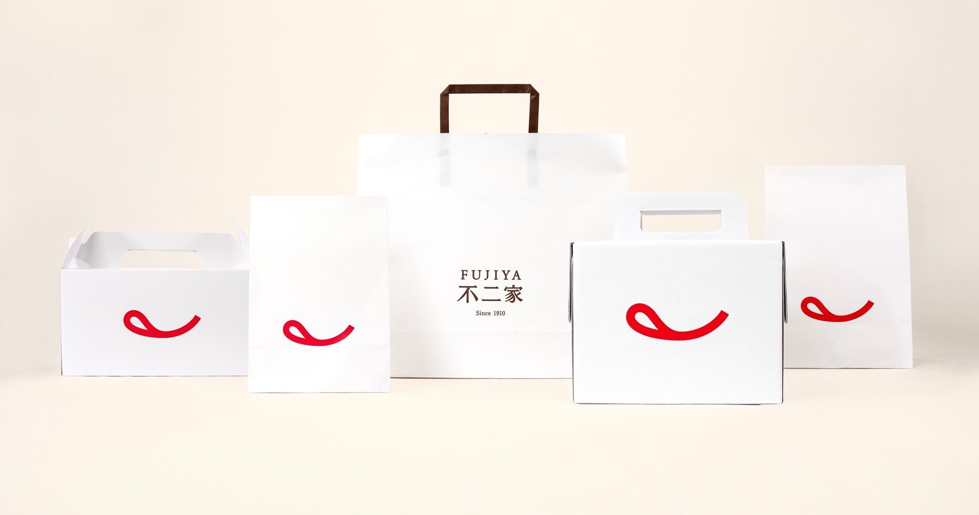 不二家洋菓子店の新VIは、不二家のマスコットキャラクター「ペコちゃん」のトレードマークでもある、ペロっと出した舌をモチーフに新たなロゴマークをデザインした「スマイルマーク」を中心に、商品の上質感を表現した明朝体の書体デザインにリニューアルした「店名ロゴ」、変わらぬ想いを刻む礎として1961年に誕生した「ファミリーマーク」を組み合わせています。