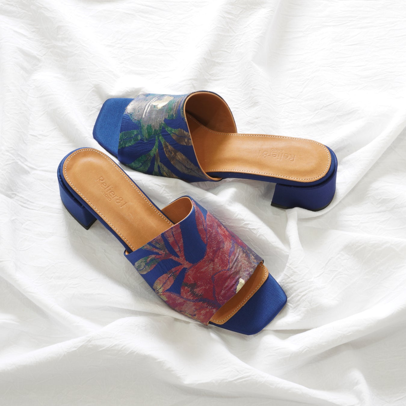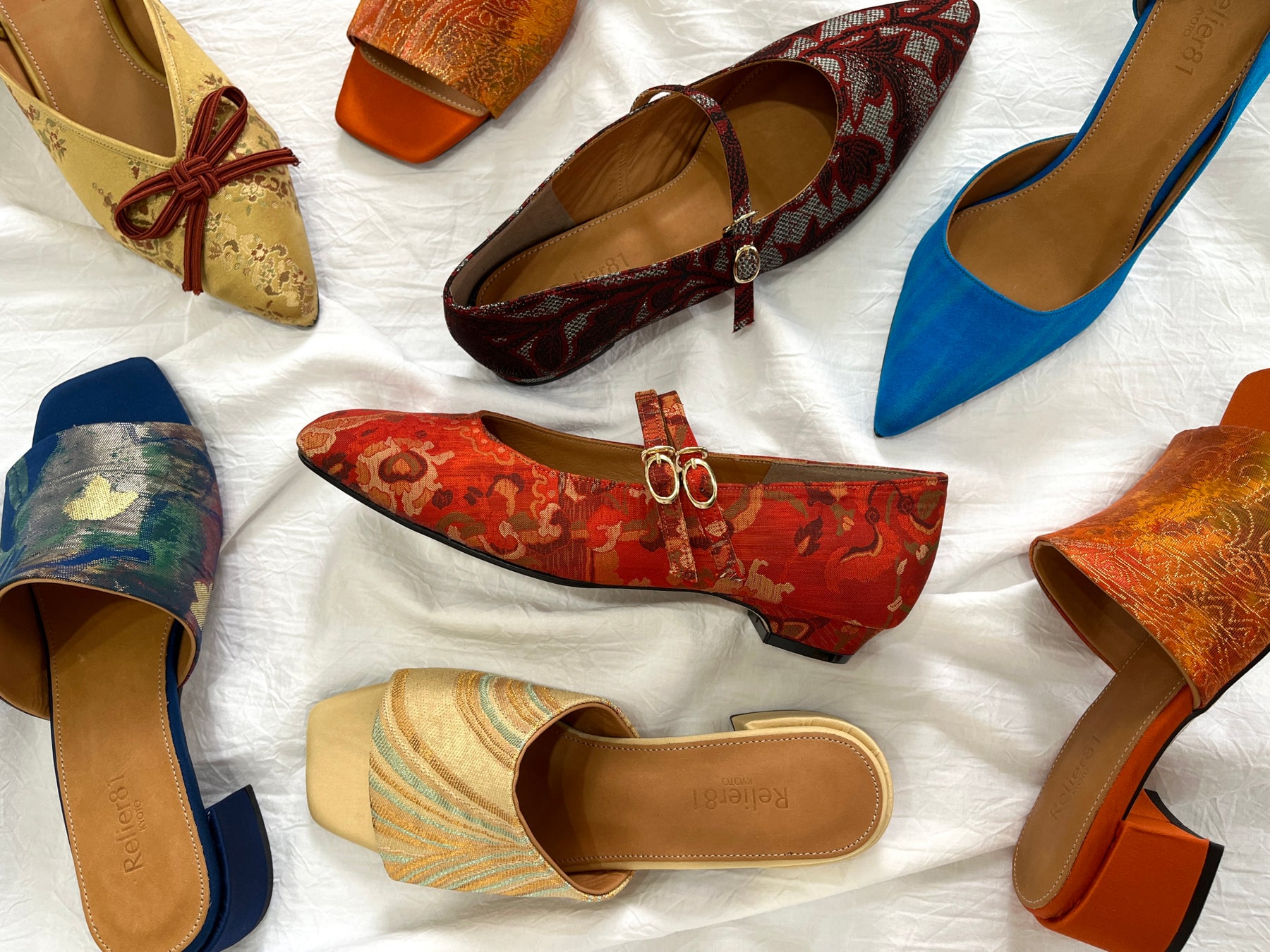 使われずに眠っている着物や帯をアップサイクルしたシューズを展開する<Relier81>