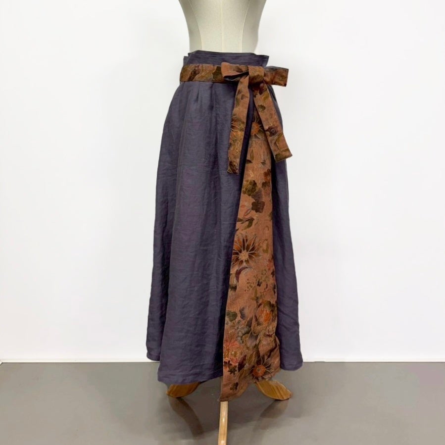 リネン素材を贅沢に使用した華やかなラップスカート。