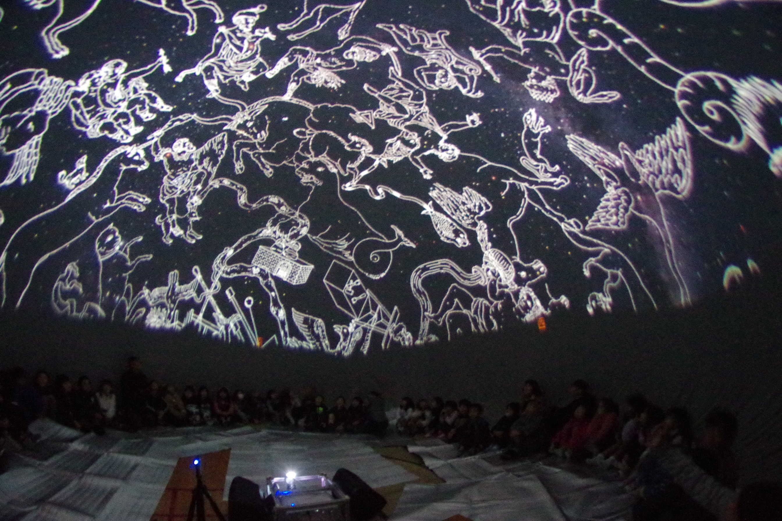 直径7mの大きなドームの中は、満天の星。みんなで宇宙旅行に出かけましょう。広い宇宙の中の、小さな地球の上で共に生きる奇跡を感じられる30分。(②③④回目は15分)