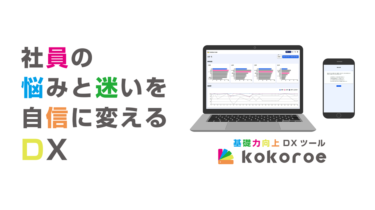 kokoroeとは、生産性を向上させるための最大の鍵は、複雑な仕事ができることではなく、基礎的な内容を迷いなく自信を持って行動できることにあるという考えのもと、反復学習によって基礎力(主体的に動くことを頂とした、会社理念や社会規範に則った動きなど「当たり前にやってほしいこと」を指す)の向上を図るDXツールです。