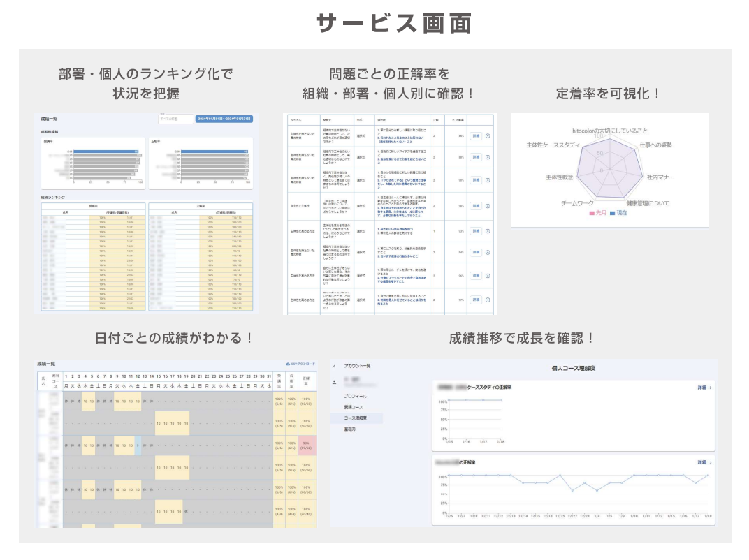 誰がどこまで理解しているのか、どこを苦手としているのか等を一目で把握し、適切に教育・指導を行えるようになります。