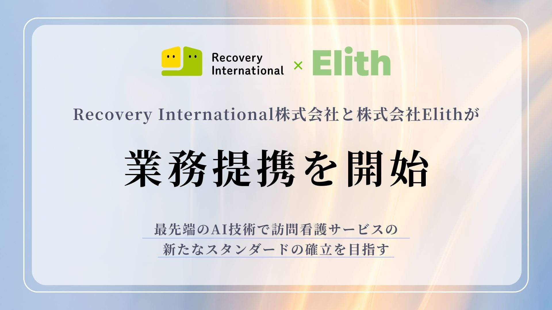 Recovery International株式会社(本社:東京都新宿区、代表取締役社長:柴田旬也、証券コード:9214、以下「Recovery International」)は、東大 松尾研発スタートアップ®・株式会社Elith(本社:東京都渋谷区、代表取締役:若林怜帆人、以下「Elith」)と業務提携を行うこととなりましたので、お知らせいたします。