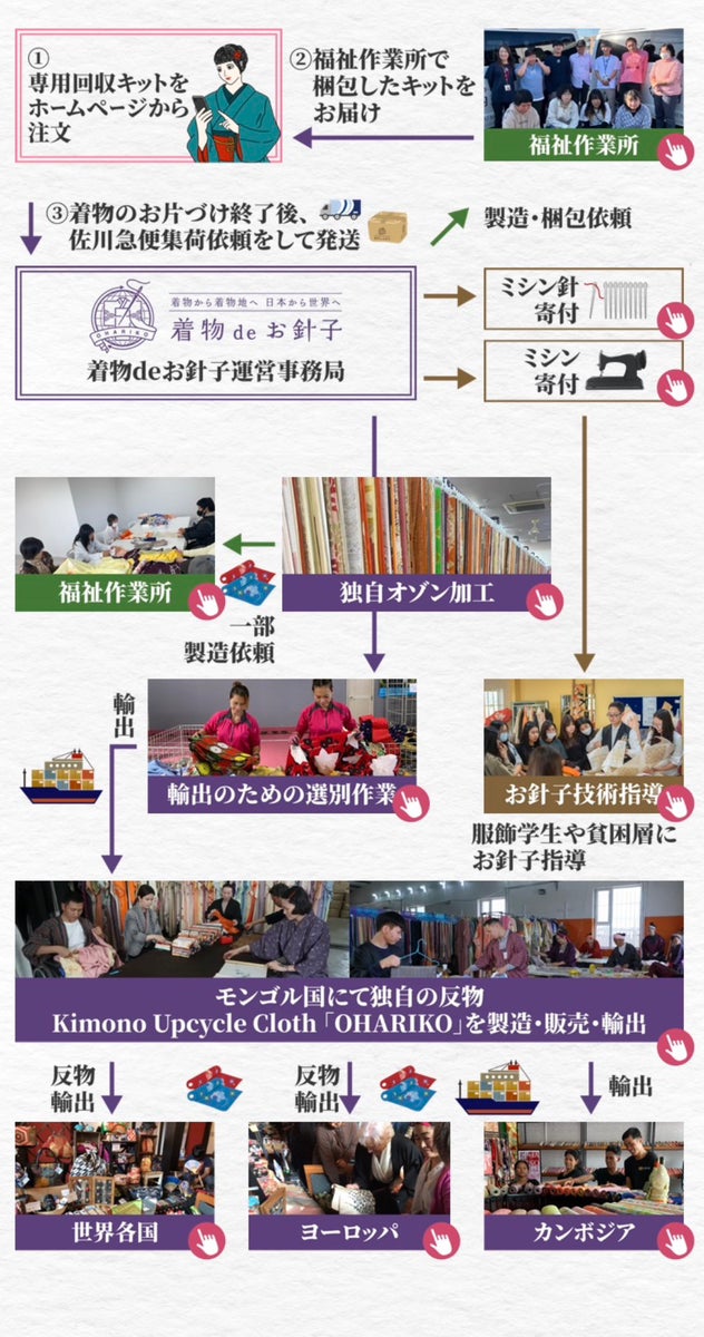 使わなくなった着物類を廃棄するのではなく世界で活かす方法をご提供 ‐着物から着物地へ 日本から世界へ‐