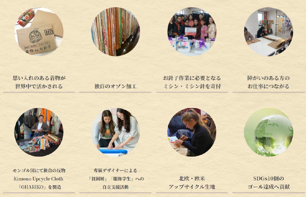 シングルマザー・貧困層・障がいのある方が中心となり、独自の反物Kimono Upcycle Cloth 「OHARIKO」を制作し着物地として世界で活かします。