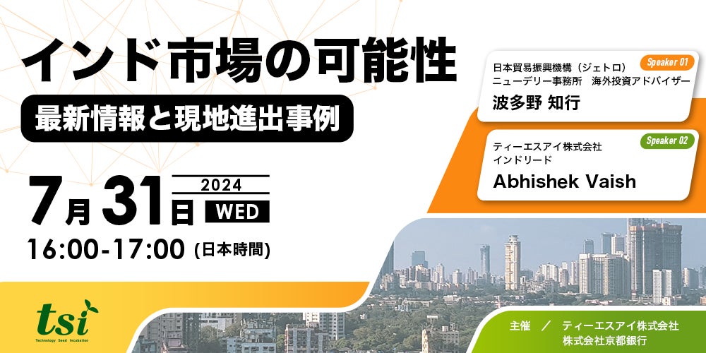 【7月31日(水)16:00-17:00】インドへの事業展開をご検討の方へ「インド市場の可能性:最新情報と現地進出事例」無料オンラインセミナー