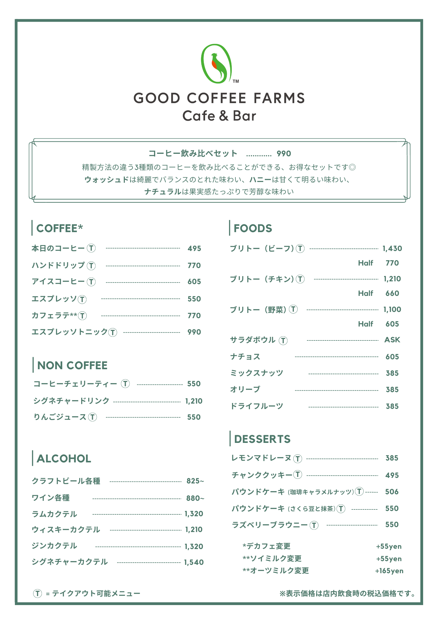 - 「GOOD COFFEE FARMS Cafe & Bar」店舗概要