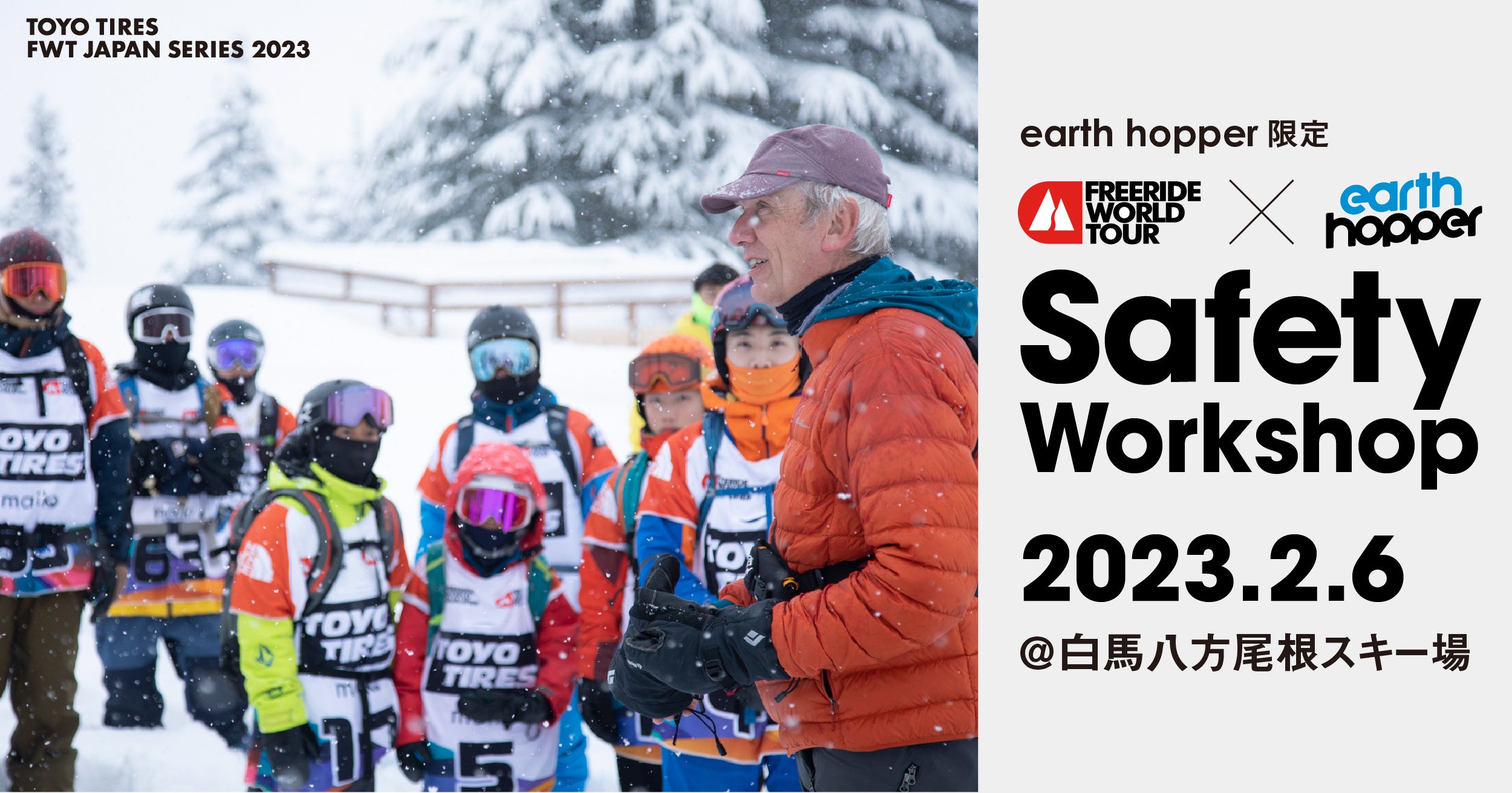 アースホッパーユーザー限定企画となっており、購入済みのパスホルダー*1のみが参加できます。白馬大会期間中の2023年2月4日(土)〜10日(金)は、一週間限定でアースホッパーで「白馬八方尾根スキー場」も2回まで利用でき、それにあわせてFWTライダーと滑れるスキー場内フリーライドセッションや、FWT選手向けのセーフティーワークショップに参加することができます。ライダーセッションは、舞子・アライの会場でも開催します。