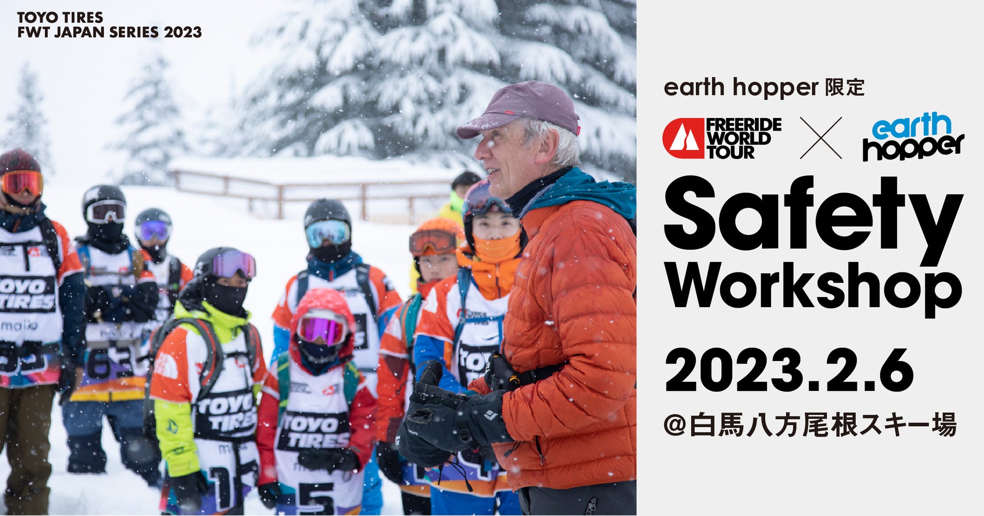 株式会社Pioneerwork(本社:東京都台東区、代表取締役:後藤陽一)が開発・販売するアーススポーツのオールシーズンパス「アースホッパー」は、今シーズン当社主催のFreeride World Tour(以下、FWT)の日本大会「TOYO TIRES FWT JAPAN SERIES 2023」と連携し、コラボレーション企画を複数開催いたします。大会開催地にて、トップレベルのFWTライダーと一緒に滑れるフリーライドセッション「What is Freeriding」や、FWT出場選手向けに実施する「Safety Workshop」への参加権など、アースホッパーユーザー限定企画をご用意。FWT期間中は開催地のスキー場にぜひお越しください。